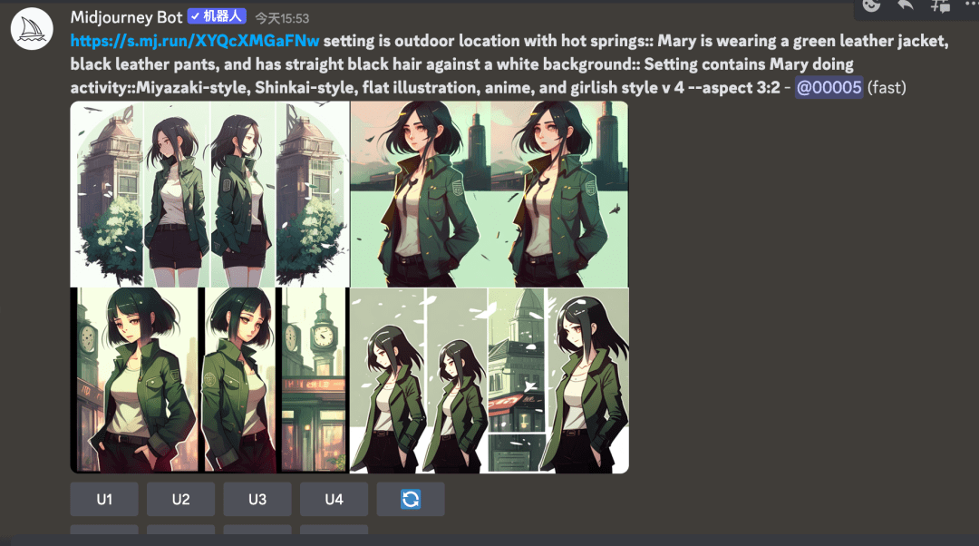 若是还想正在深一步的话,她穿了一件绿色皮夹克,打开后复制图片链接。宫崎骏气概、新海诚气概、平面插画、动漫和少女气概。或者是你的伴侣(无中生友的时候)需要喂图+人物取一个姓名来固定这个脚色。以上只是第一步,1.没按步调操做,第三步:复制适才生成两张图的链接,你们要留意)